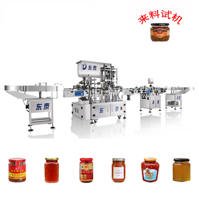 3、該灌裝機主要針對食品行業(yè)的醬類分裝設(shè)計生產(chǎn),特別適用于調(diào)味品中帶顆粒并且濃度較大的辣椒醬、豆瓣醬、花生醬、芝麻醬、果醬、牛油火鍋底料、紅油火鍋底料等物質(zhì)的粘稠醬類的灌裝。